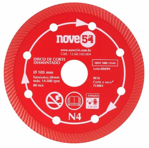 Disco Diamantado 105mm liso Nº4 NOVE54